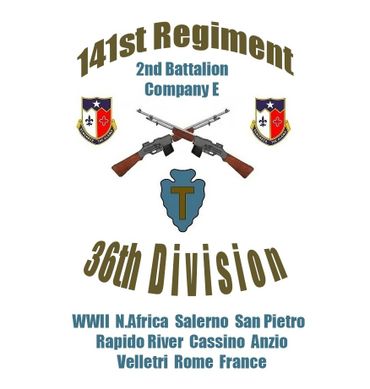 An original Texas National Guard Unit out of El Paso Texas, Company E was federalized in November of 1940 and moved to Camp Bowie in Brownwood Texas. The 141st Regiment is the oldest fighting unit in the state of Texas and trace their roots back to the Texas Revolution.
